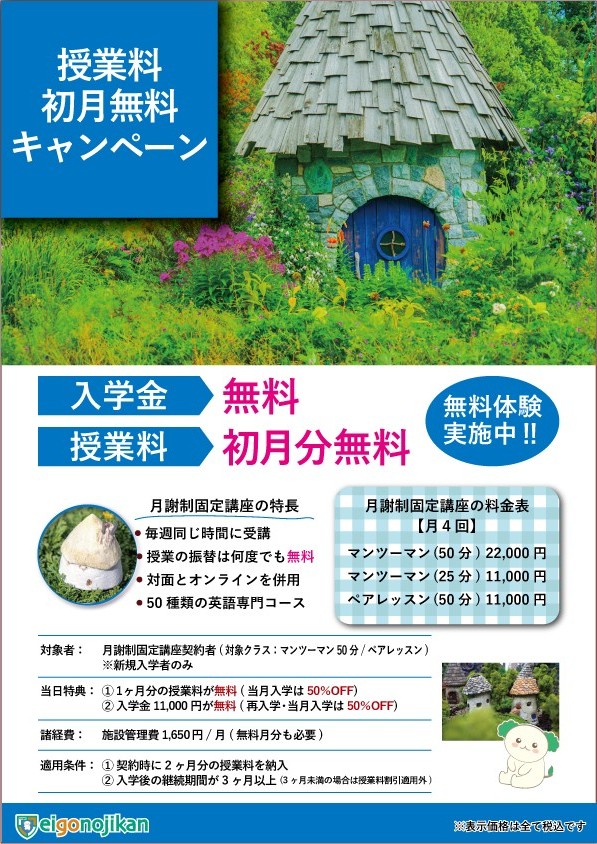 - 短期間で結果を出したい生徒様にはマンツーマンとペアレッスンが入学金無料&授業料10%OFFで受講きる回数制短期集中プランをお勧めしています。 安心の月謝制講座は、マンツーマン25分×4回 11,000円(税込)、ペアレッスン50分×4回 11,000円(税込)が人気です。白金高輪校では新規入学者を対象に、入学金無料&初月月謝無料キャンペーンを実施しています。